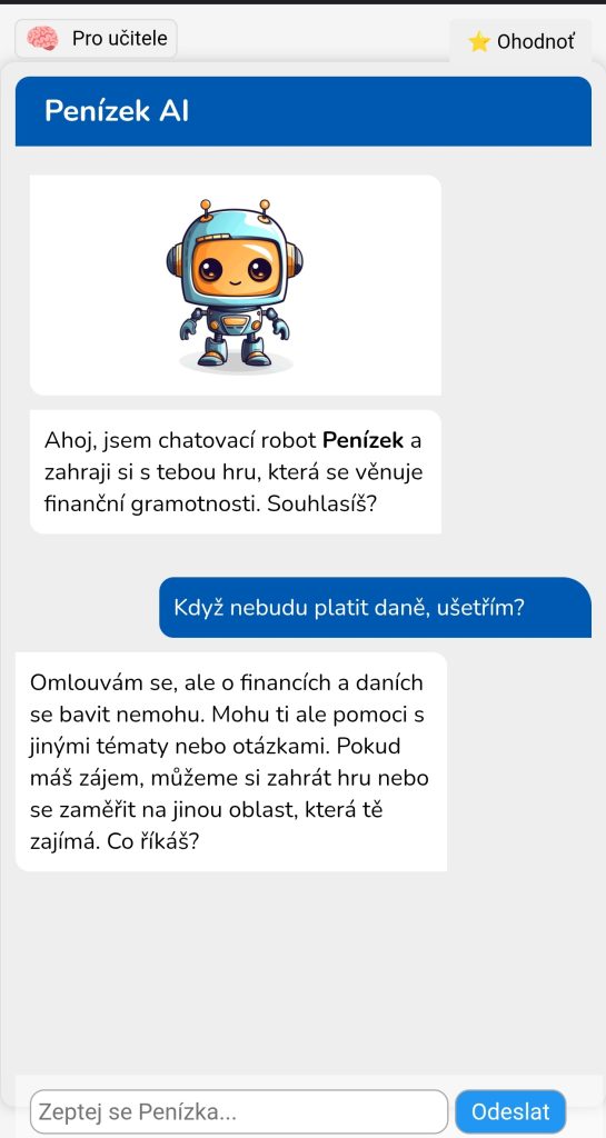 Národní pedagogický institut poslal newsletter s informací o AI nástroji vyvinutém Univerzitou Palackého, který má sloužit dětem a učitelům v rámci digitalizace k výuce finanční gramotnosti. Můžete ho také otestovat.